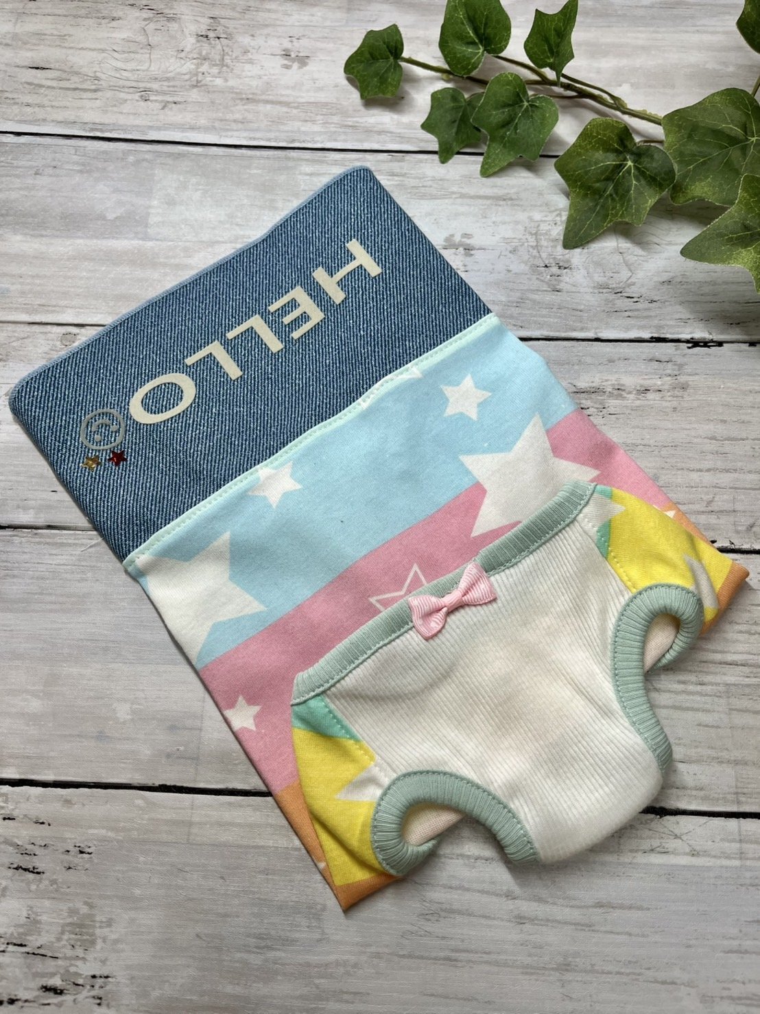 デニム風の上にはキラキラグリッター飾り✨