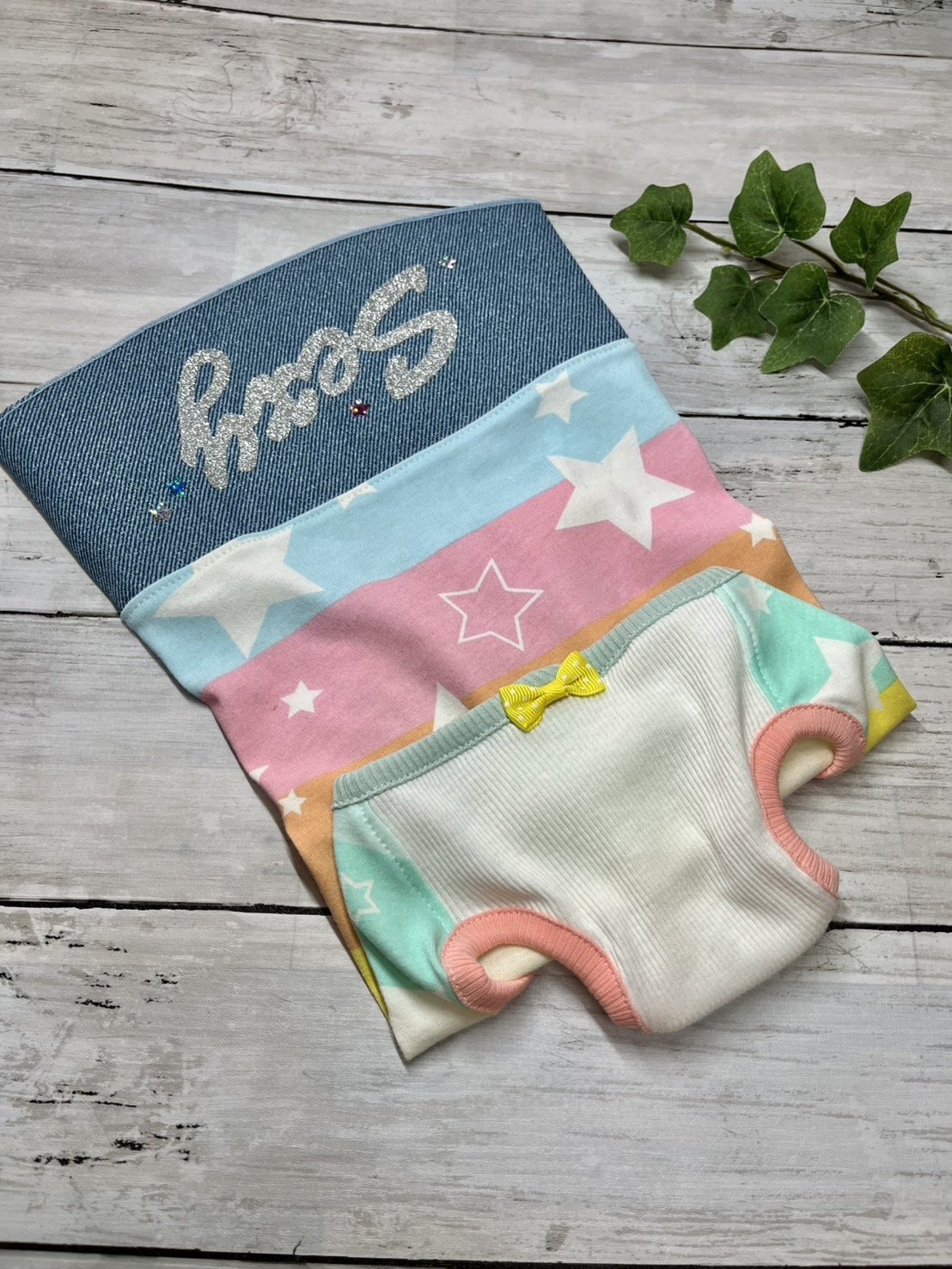 デニム風の上にはキラキラグリッター飾り✨