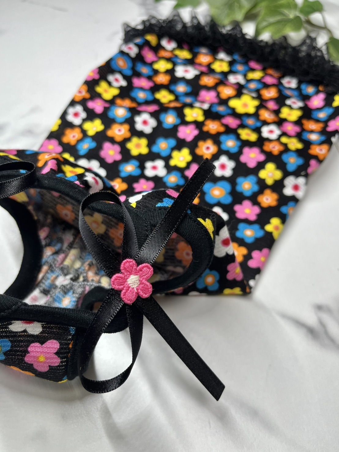【D・KC】カラフルお花ワンピ♪(黒)
